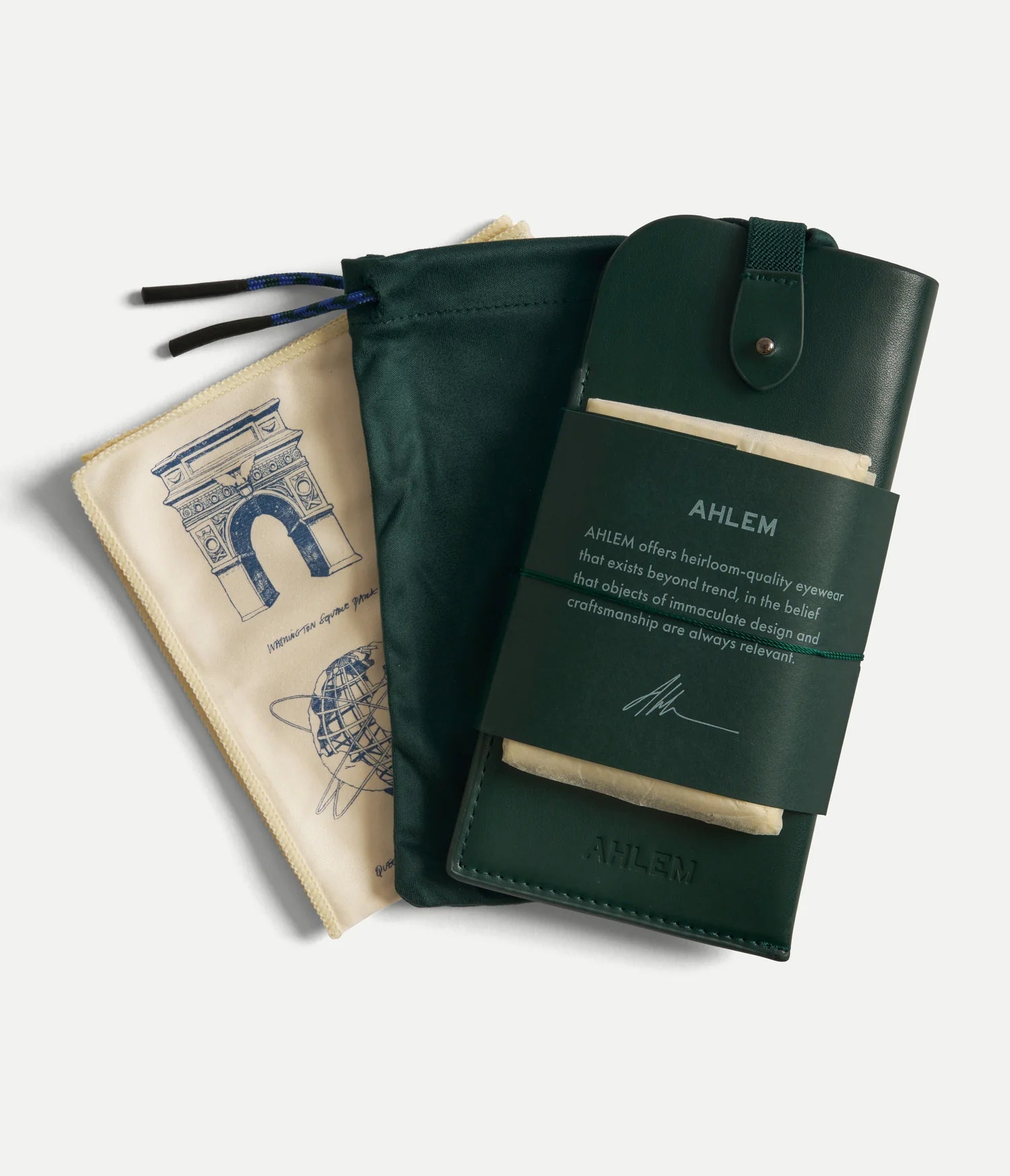 -Custom temple tip drawing inspiration from our signature triangular and circular shapes and evocative of AHLEM'S iconic Bauhaus visual language