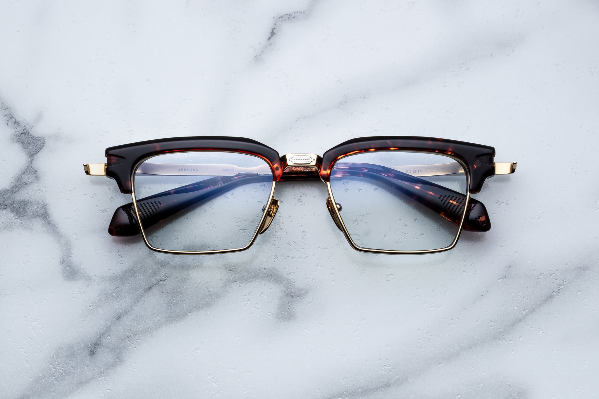 A serious and sophisticated spectacle of the highest caliber, these classic ‘50s-inspired spectacles are a stoic combination of craft and ambition, featuring a prominent acetate brow with a sleek titanium lens rim, and finely engraved temples with a unique arrowhead transition.
