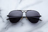 BLACK-FINISHED 100% BETA TITANIUM FRAME WITH BLACK CURED CELLULOSE ACETATE TEMPLE SLEEVES AND BLACK LENSES