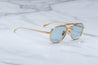 GOLD 100% BETA TITANIUM FRAME WITH DARK GOLD EYERIM TITANIUM INSERTS AND BLUE LENSES