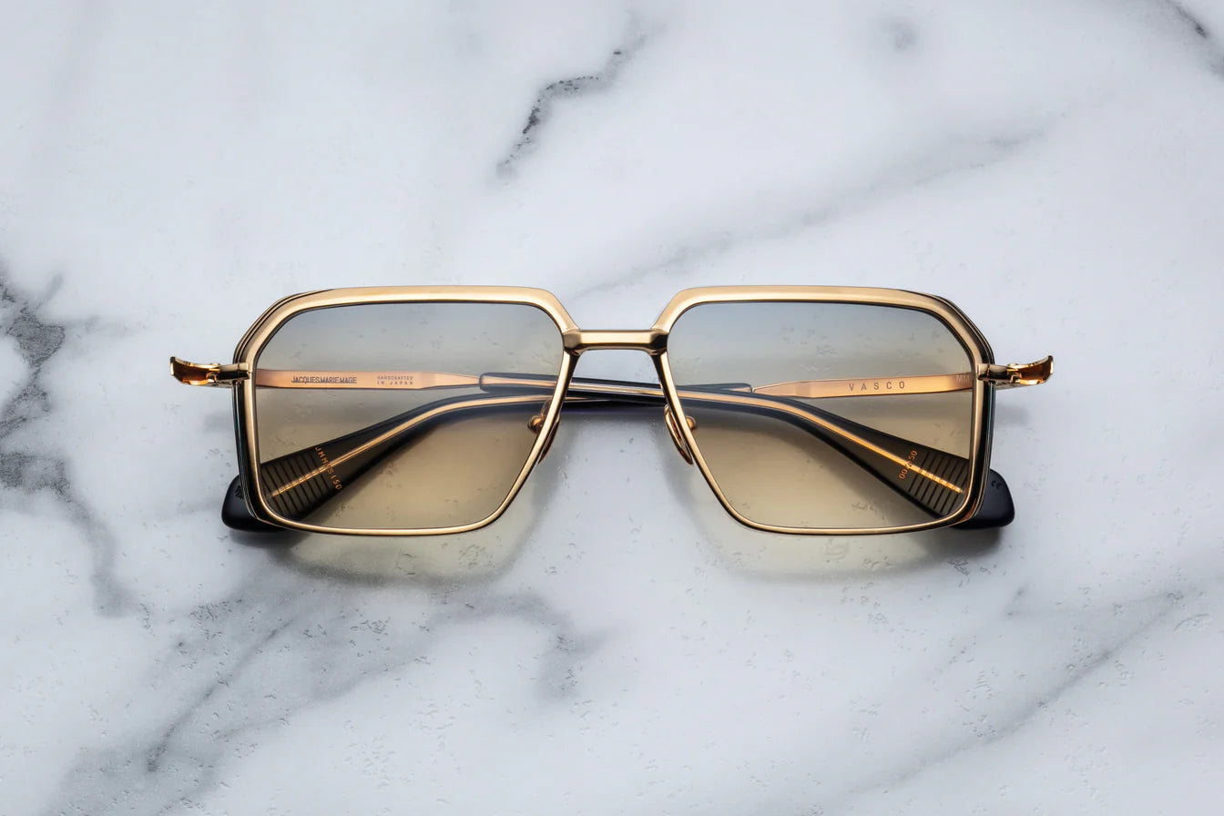 With a sense of worldly sophistication you can set your watch to, when it comes to luxury these late 70's-inspired spectacles speak volumes, featuring a unique titanium frame comprised of sculpted volumes, hairline epoxy details, and temple tips laminated with custom cured acetate.