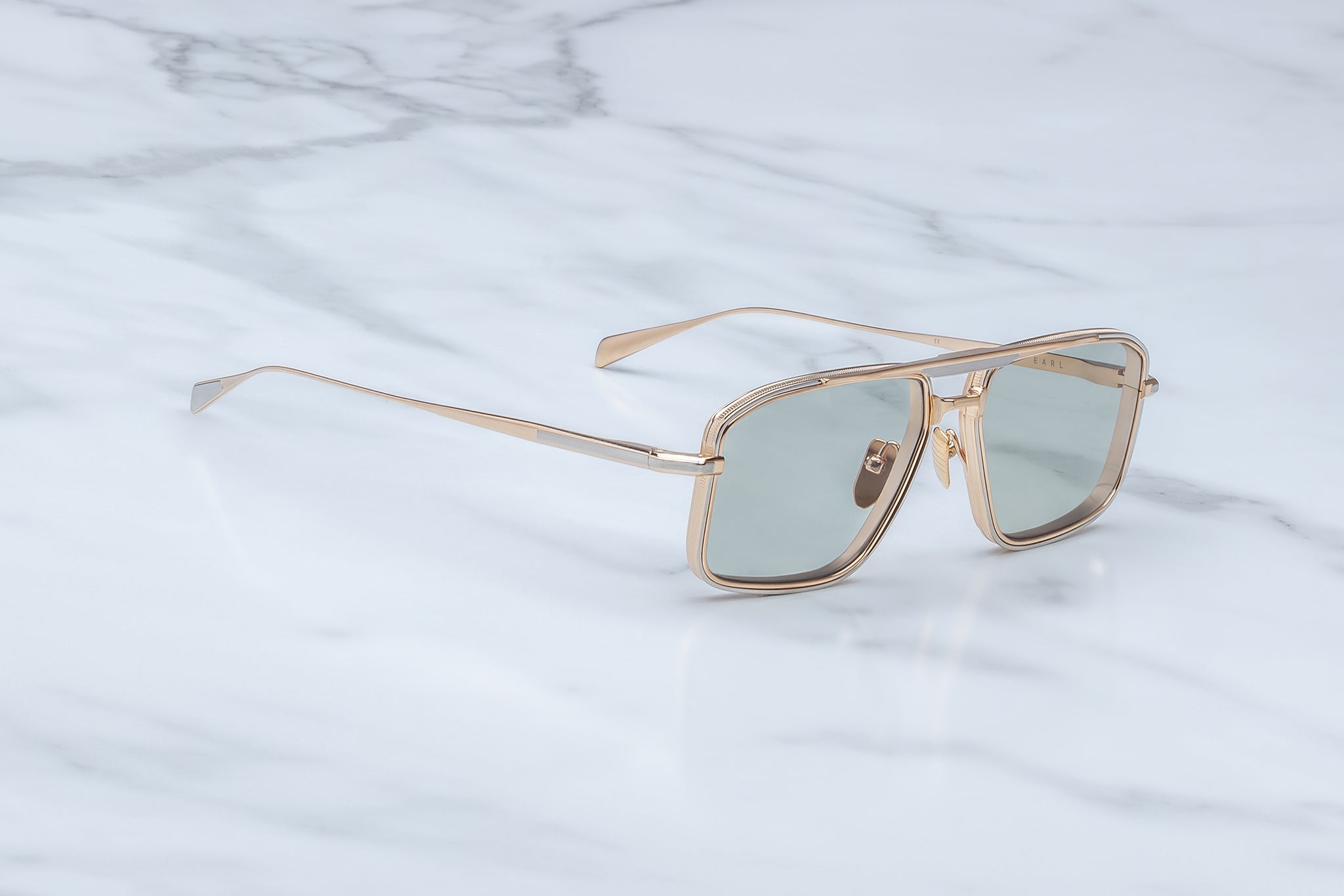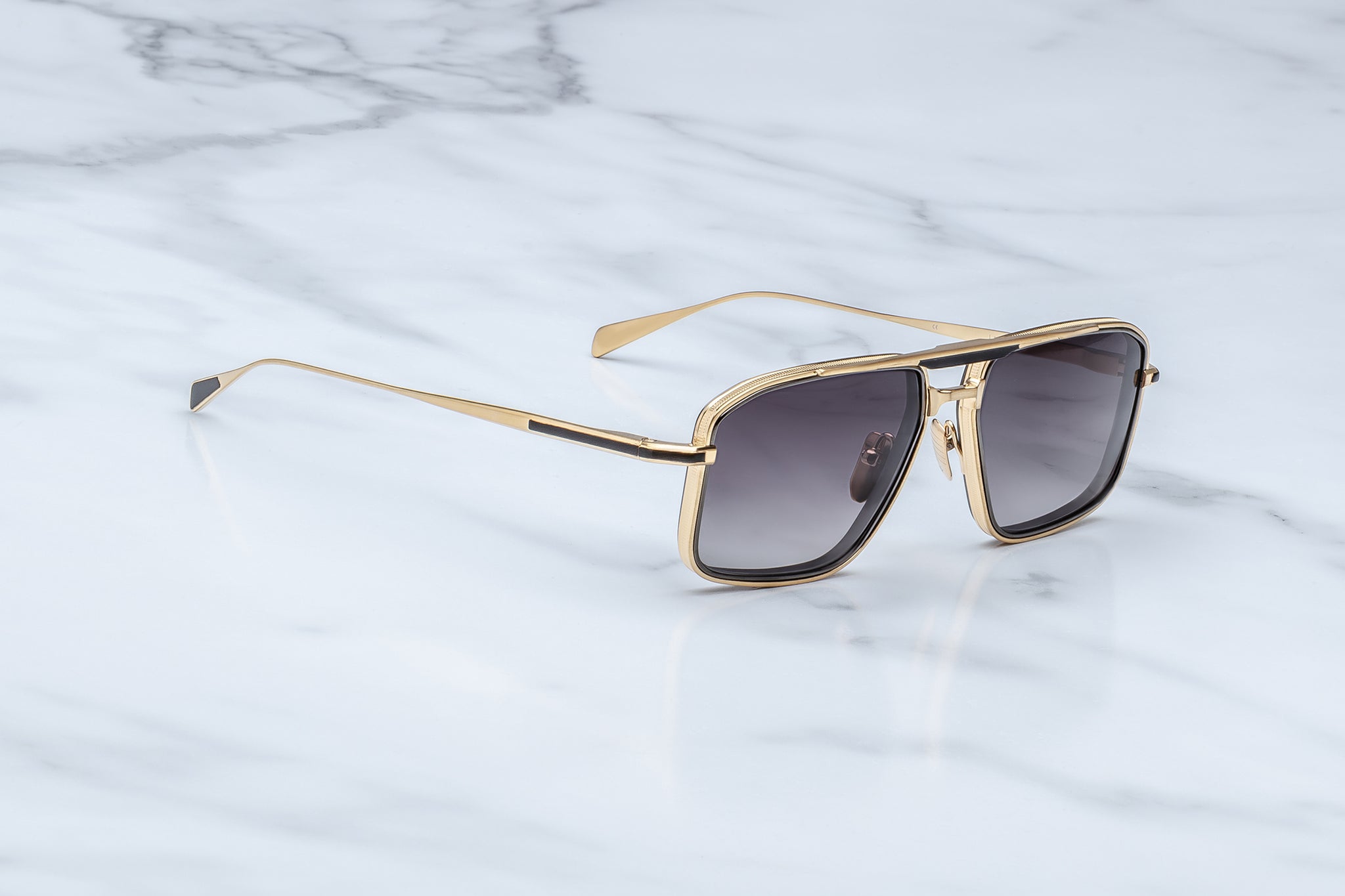 Sleek, '70s-inspired titanium navigator with unique 4mm titanium lens-rim inserts and dual-tone brow and temple details with our signature Art Deco embellishments.
