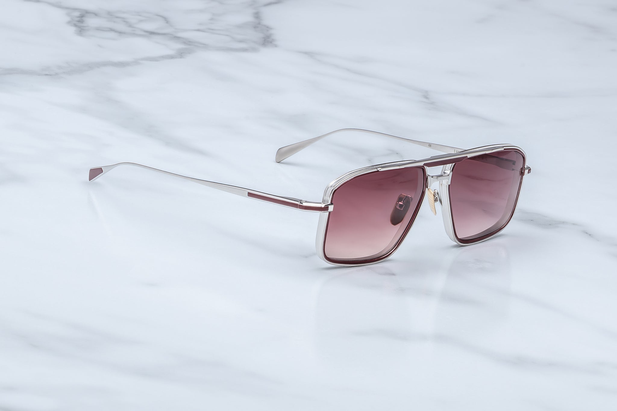 SILVER 100% BETA TITANIUM FRAME WITH BORDEAUX EYERIM TITANIUM INSERTS AND RED LENSES