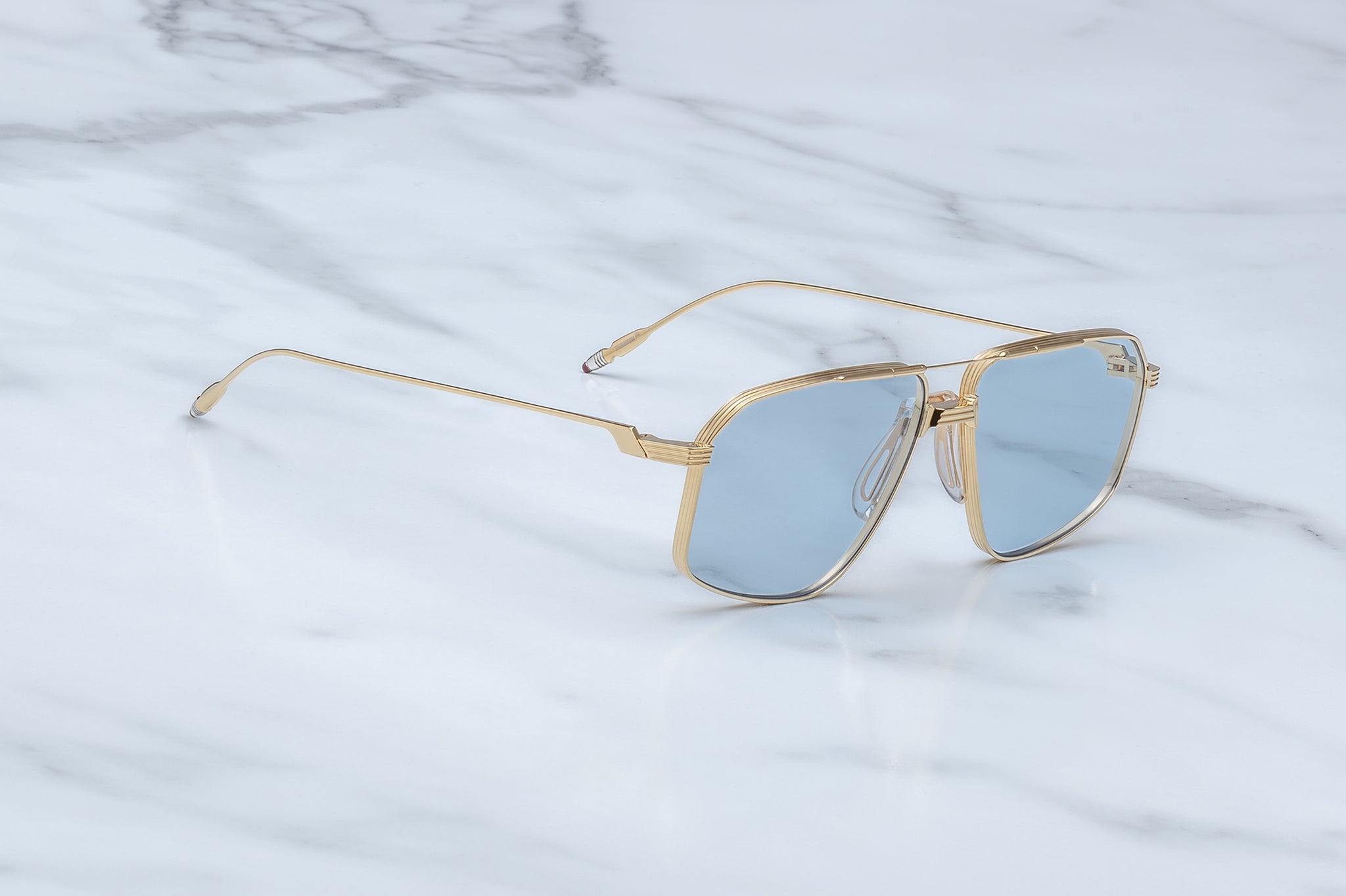 GOLD 100% BETA TITANIUM FRAME WITH GOLD ACCENTS AND BLUE GRADIENT LENSES