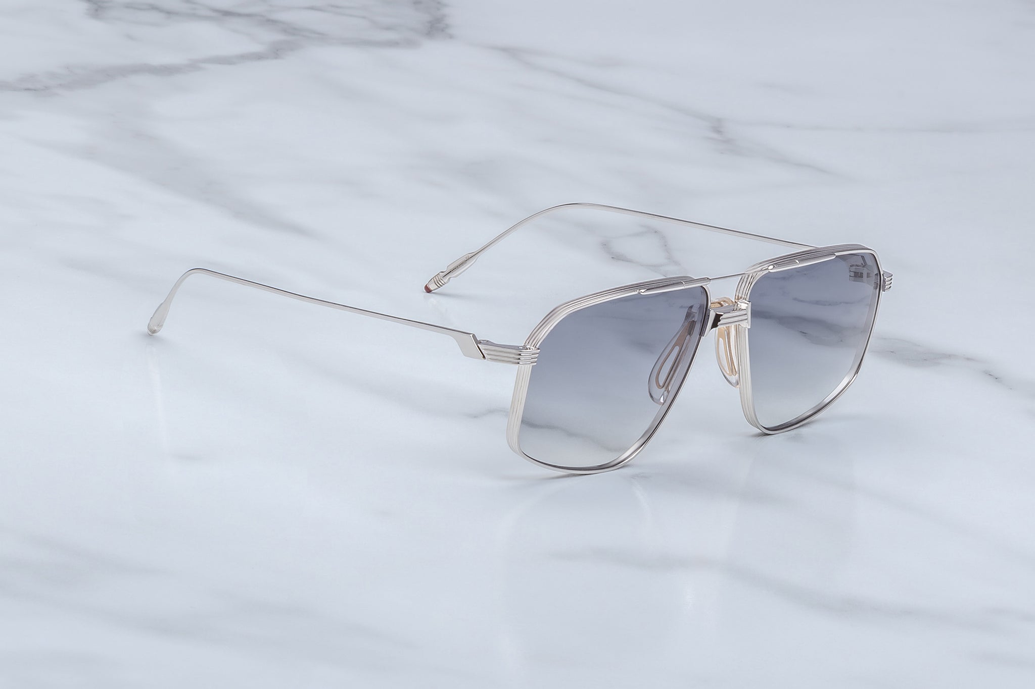 SILVER 100% BETA TITANIUM FRAME WITH SILVER ACCENTS AND GREY LENSES