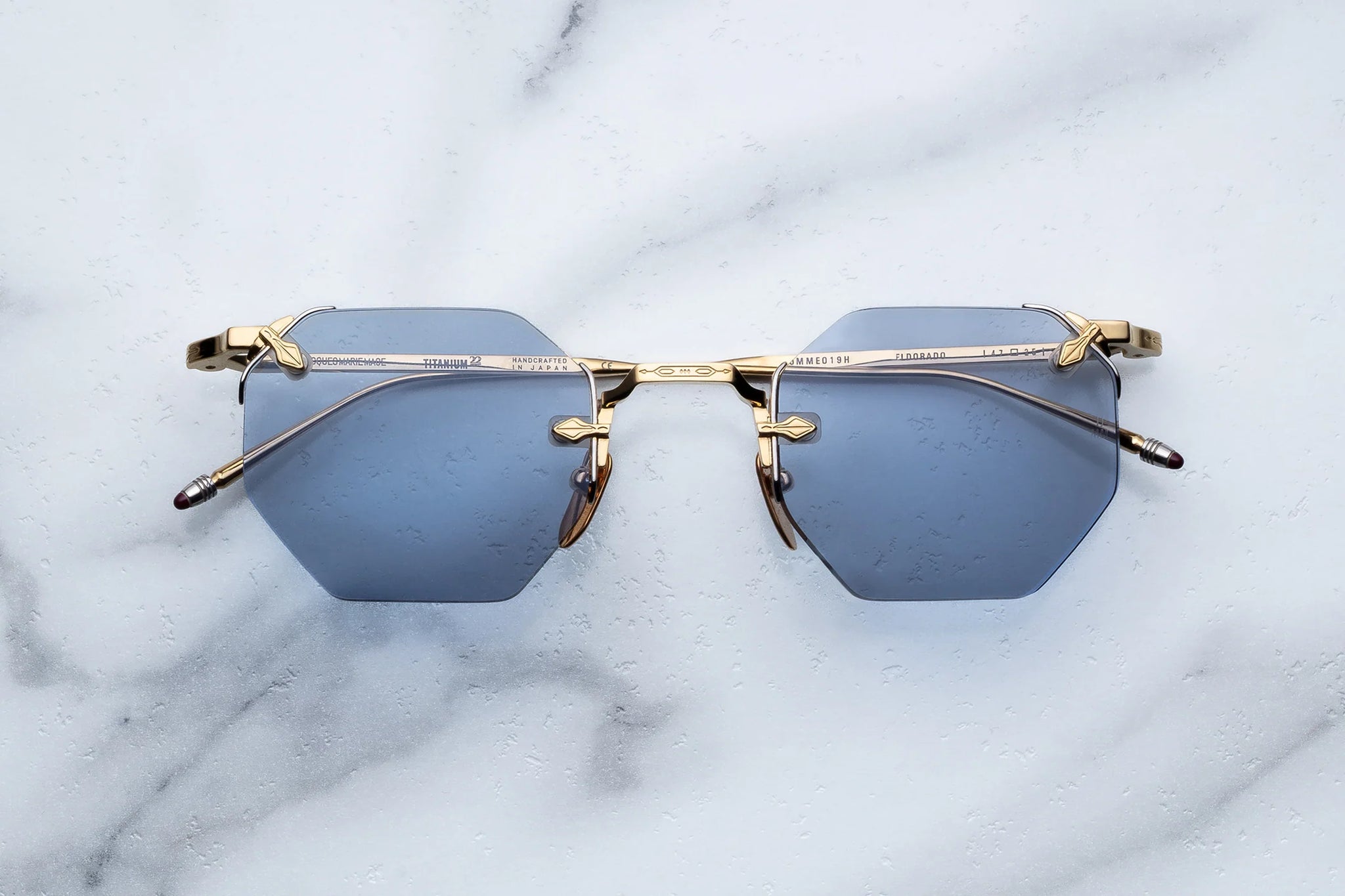 GOLD 100% BETA TITANIUM FRAME WITH BLUE LENSES