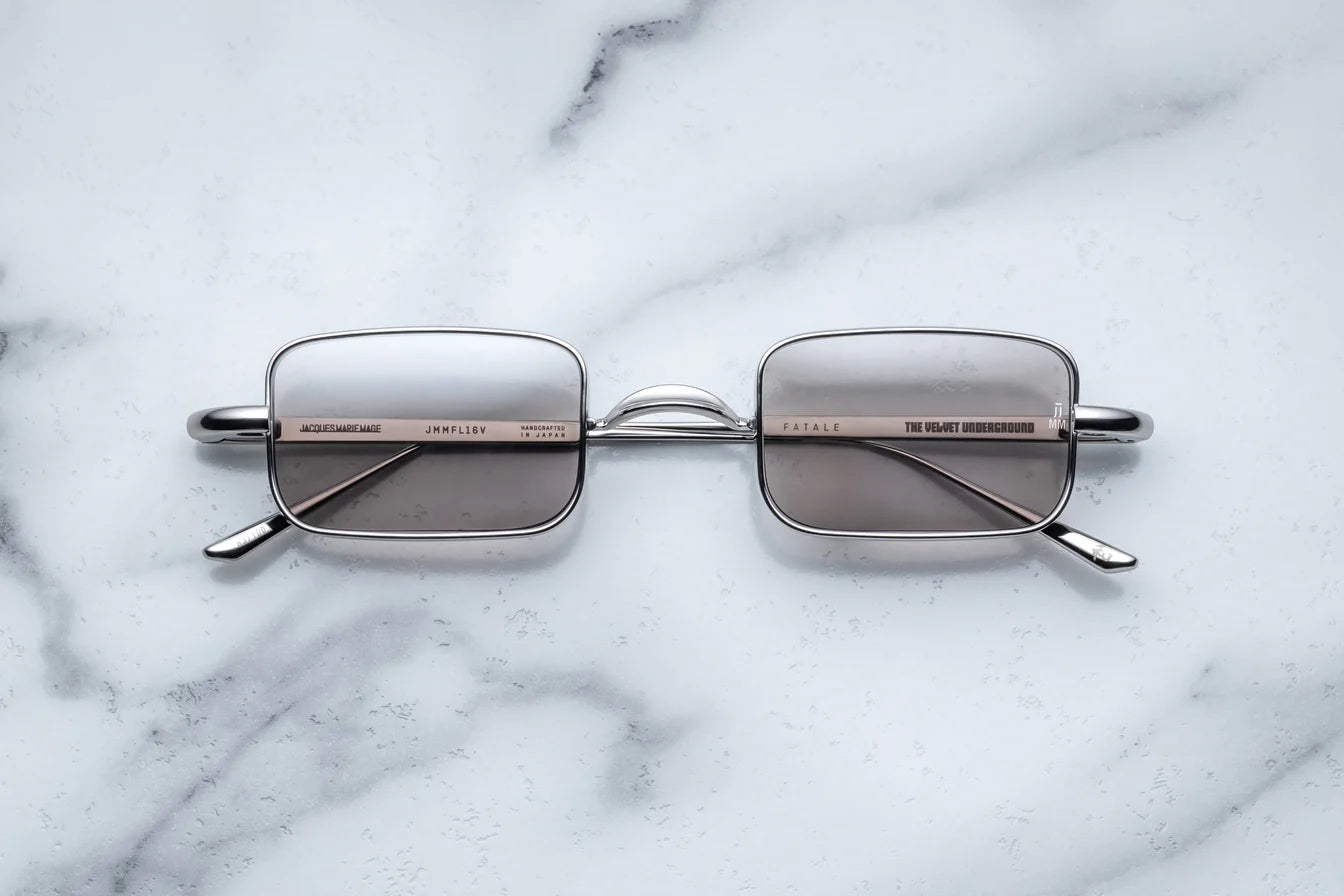 A special commemorative box set containing all four of the unique eyewear styles produced for THE VELVET UNDERGROUND BY JMM collection since its inception five years ago: including White Light (2020), Squeeze (2021), Fatale (2022), and Vicious (2023) in a limited-edition ‘Platinum’ color story.