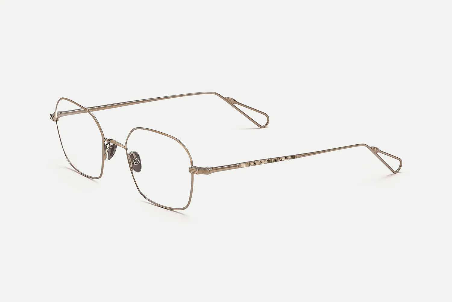 Laser-engraved filigree nose pads that play with Bauhaus shape, made of titanium to ensure non-reactive and hypoallergenic aspects