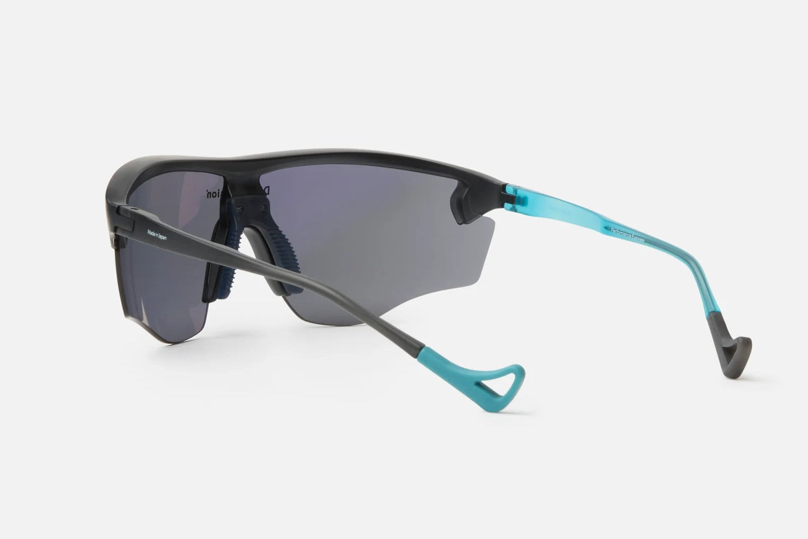 The Junya Racer is an 8 base frame that wraps close to the head for the highest level of visual clarity and protection at speed. Fitted with a hand sculpted lens and custom shaped 125mm temples for running and cycling. D+ Blue Mirror was developed for physical pursuits requiring maximum sun protection. The mirror coating facilitates additional infrared screening. The lens offers 100% UVA/B protection while transmitting 10.63% of visible light and 4.05% of blue light.