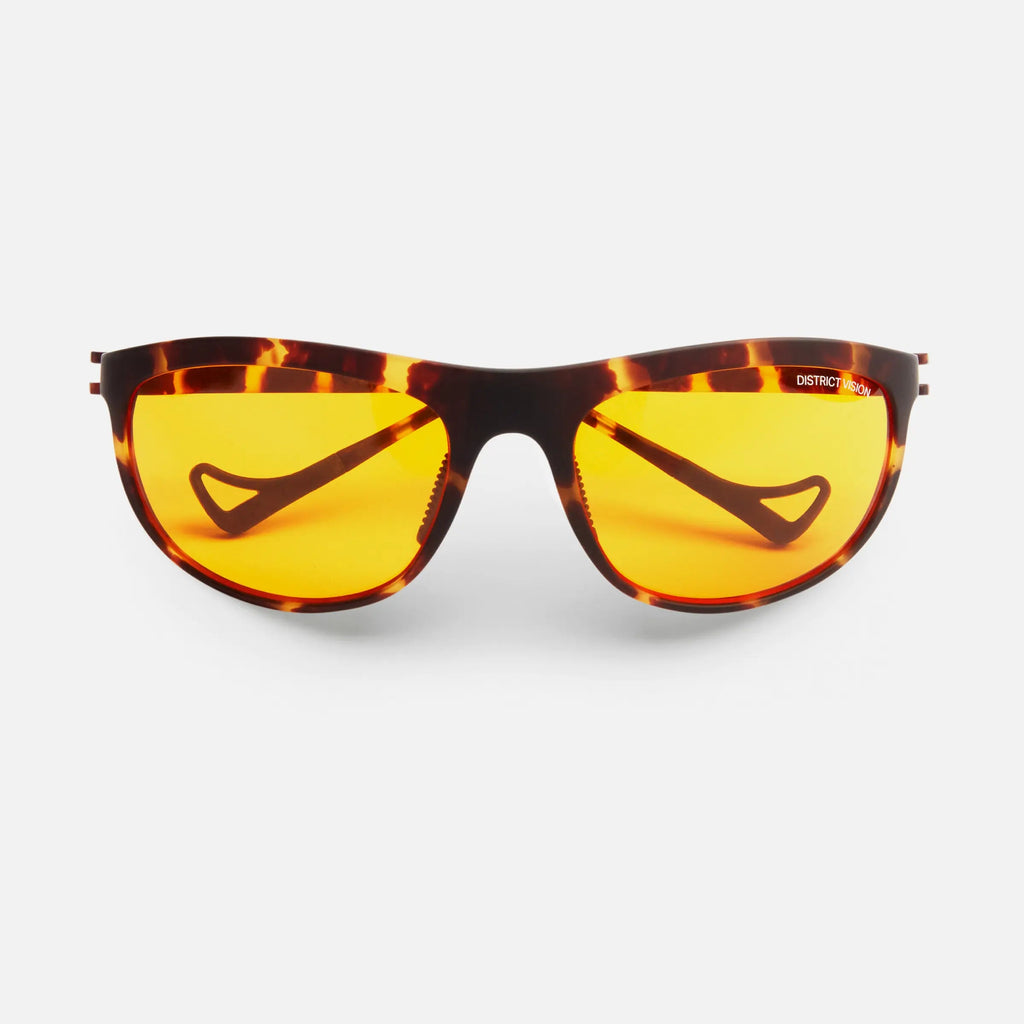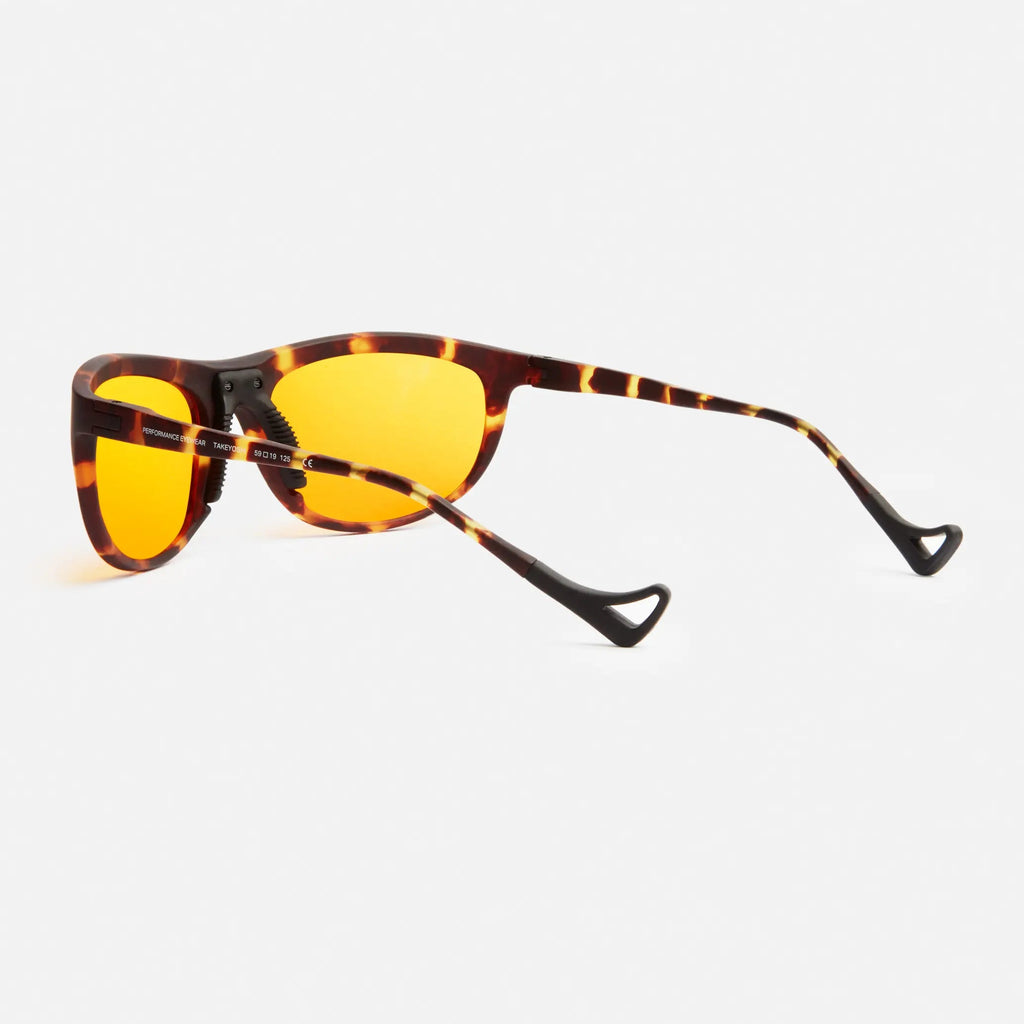 The Takeyoshi Altitude Master is an 8 base frame construction designed for rigorous outdoor pursuits. The ergonomic form is engineered to aid ventilation and enhance the field of vision whilst protecting the eyes. Temples are architected for helmet use. D+ Amber Mirror was developed for physical pursuits requiring maximum sun protection. The mirror coating facilitates additional infrared screening. The lens offers 100% UVA/B protection while transmitting 8.73% of visible light and 6.7% of blue light.