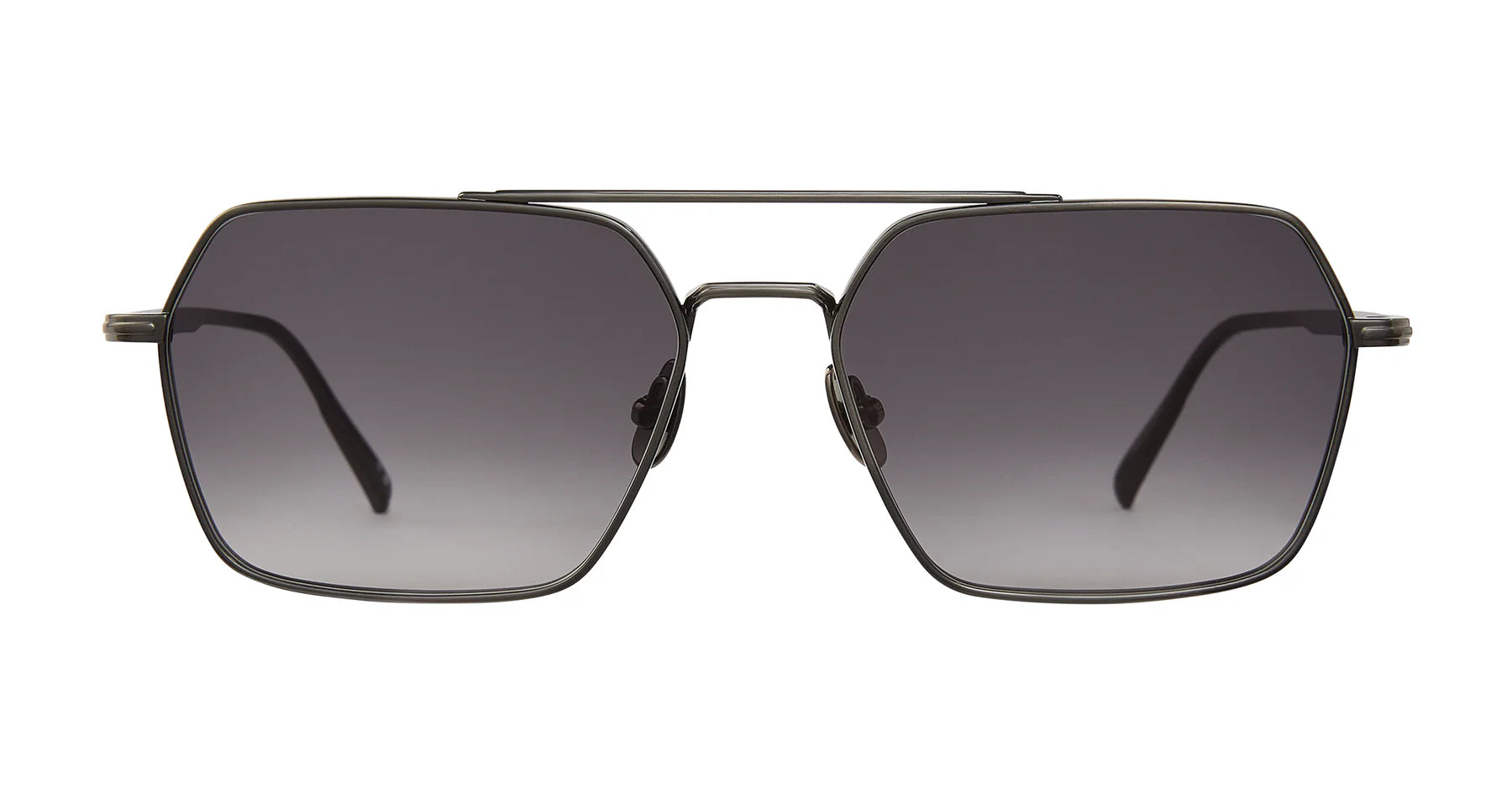 Alta Sun is an oversized, angled aviator crafted entirely from lightweight titanium. Featuring a distinctive double bridge, sculpted end pieces, and clean temple design, it balances bold proportions with precision detailing. Screw-in titanium nose pads provide comfort and stability. 100% UV protection.