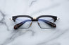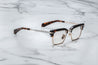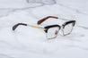 A serious and sophisticated spectacle of the highest caliber, these classic ‘50s-inspired spectacles are a stoic combination of craft and ambition, featuring a prominent acetate brow with a sleek titanium lens rim, and finely engraved temples with a unique arrowhead transition.
