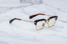 GOLD 100% BETA TITANIUM FRAME WITH SILVER ACCENTS HAVANA CURED CELLULOSE ACETATE AND SUPERLIGHT GREEN LENSES