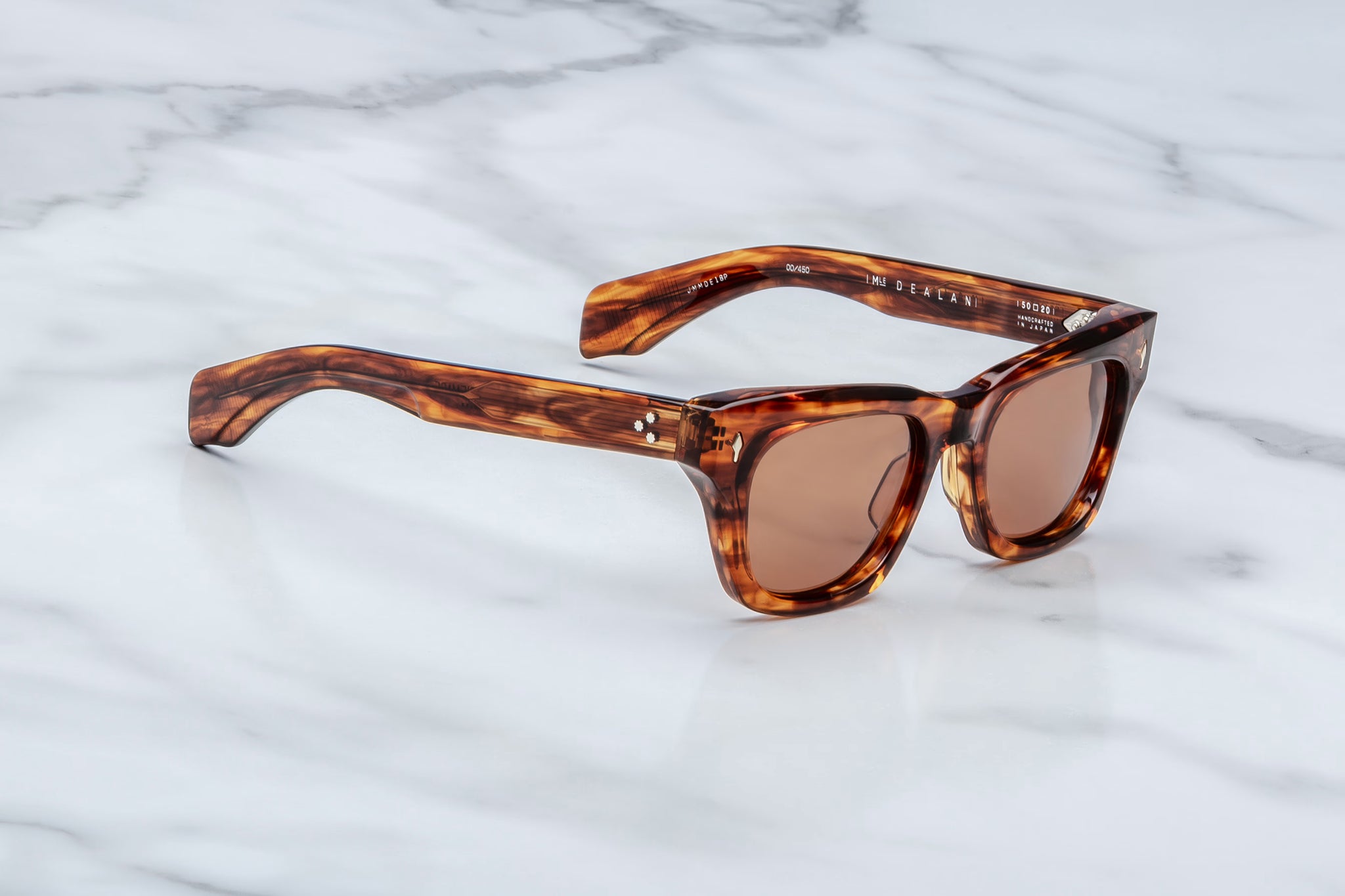 HAVANA 10MM CURED CELLULOSE ACETATE FRAME WITH CUSTOM DOUBLE LAMINATED ACETATE TEMPLES AND BROWN LENSES