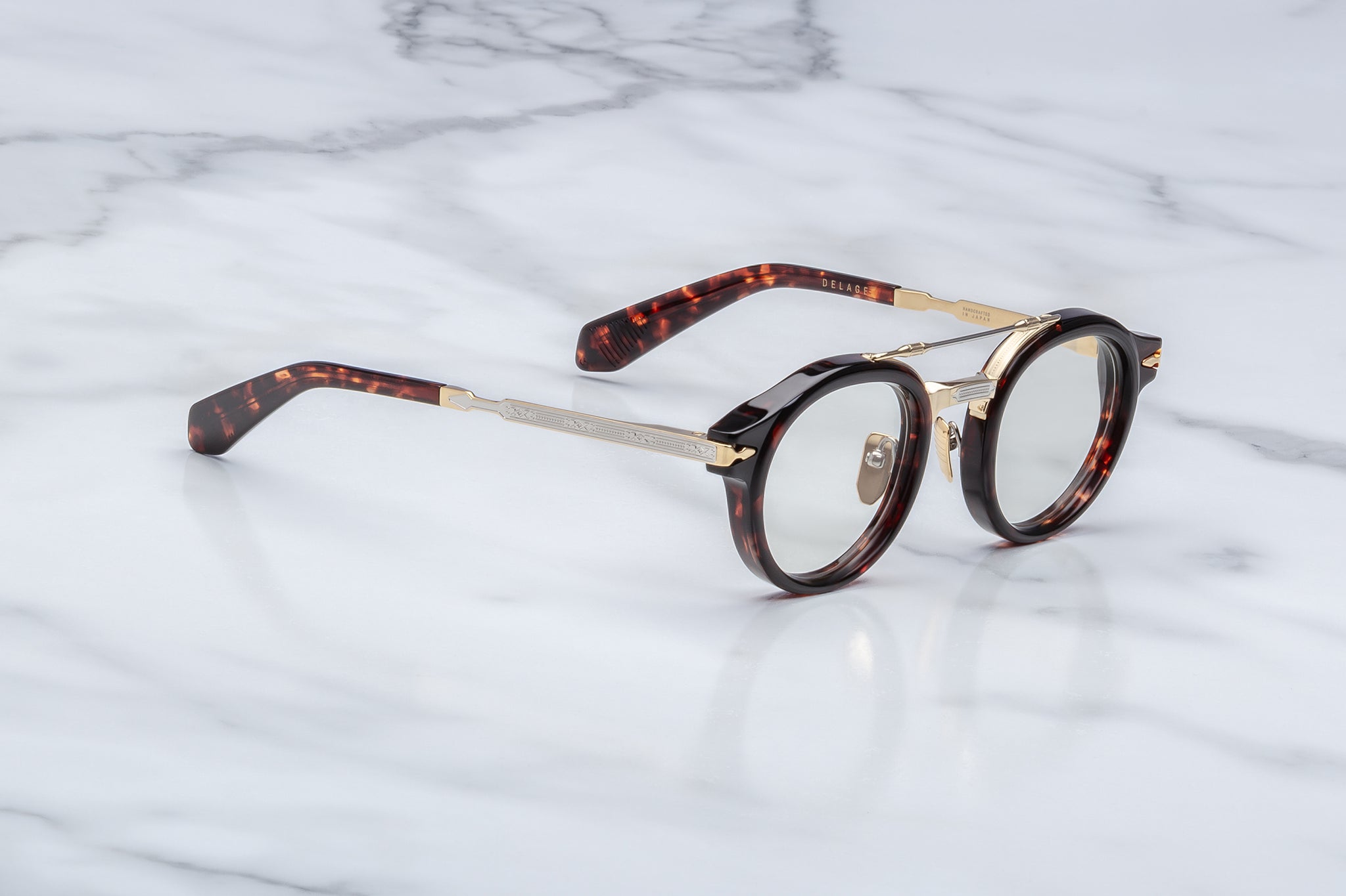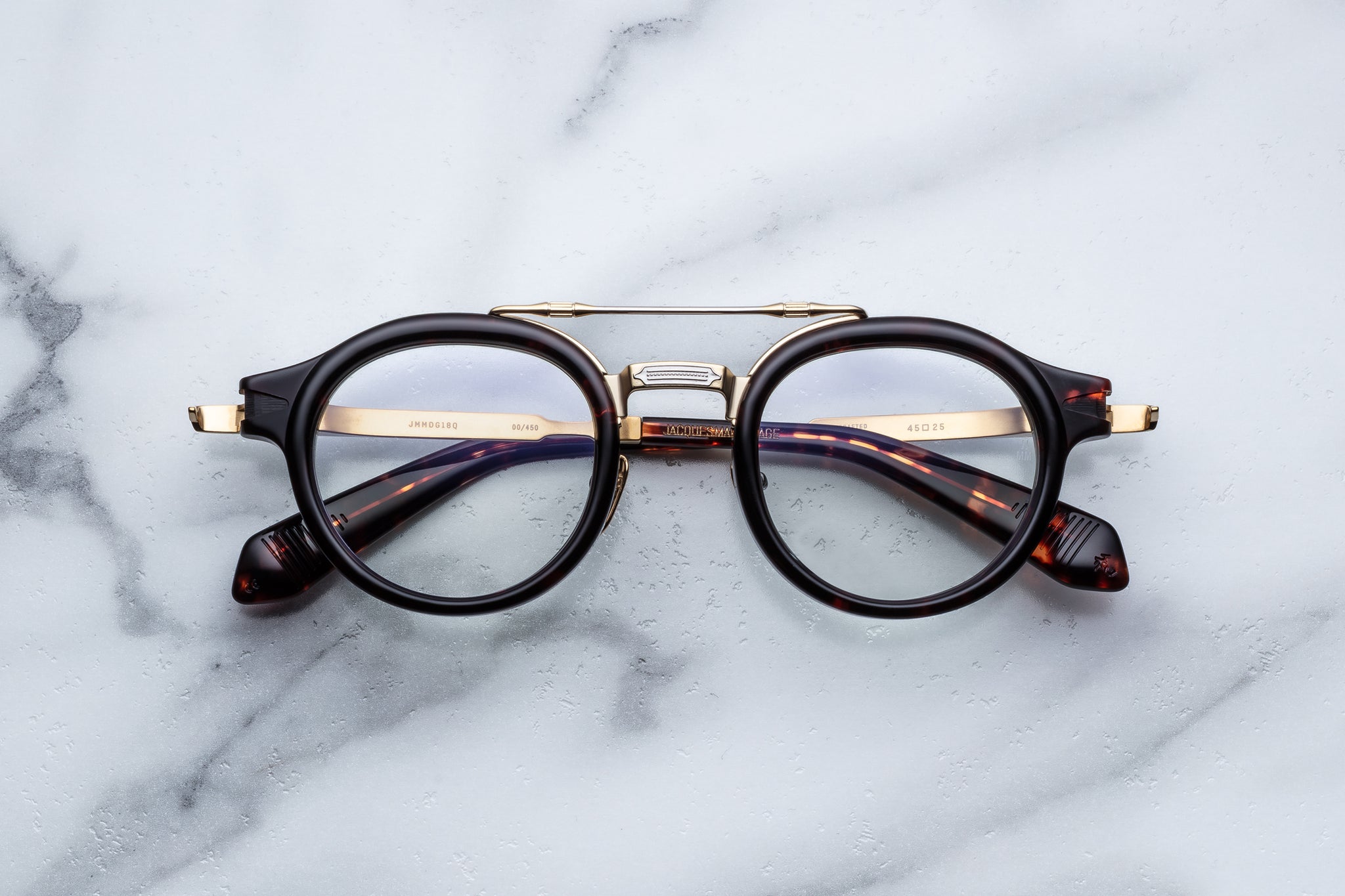 The fluid lines and fine embellishments of Art Deco find their full realization in these ‘50s-inspired spectacles made for the modern city, a bold acetate frame with a distinct titanium brow bar that speaks to these self-assured spectacle’s subtle old-world sensibility.