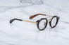 STERLING SILVER 100% BETA TITANIUM FRAME WITH DARK GOLD ACCENTS BLACK CURED CELLULOSE ACETATE AND SUPERLIGHT BROWN LENSES