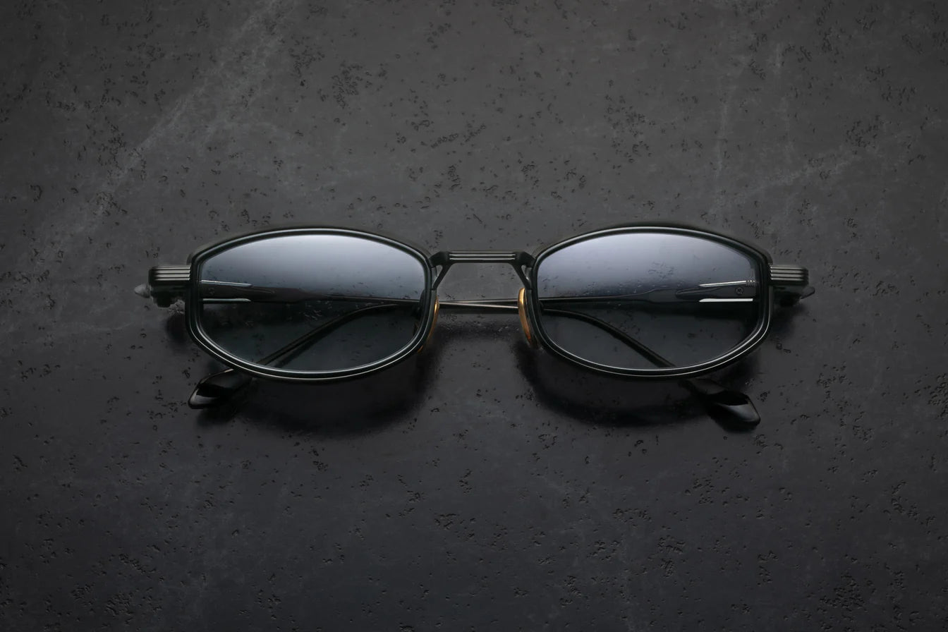 BLACK AND SILVER 100% BETA TITANIUM FRAME WITH BLACK CURED CELLULOSE ACETATE AND BLACK GRADIENT LENSES
