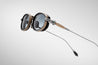 SILVER AND GOLD 100% BETA TITANIUM FRAME WITH BLACK CURED CELLULOSE ACETATE AND BLUE GRADIENT LENSES