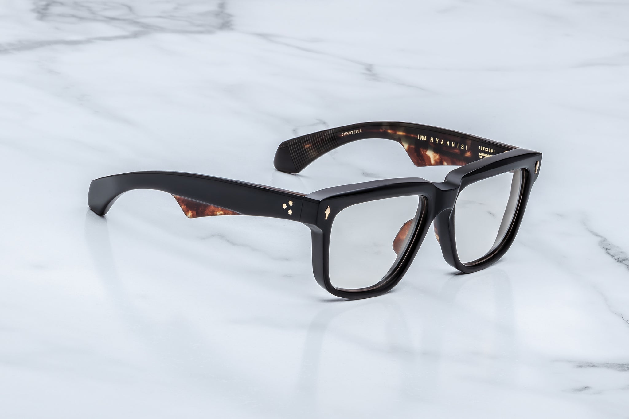 10MM CURED CELLULOSE ACETATE FRAME IN BLACK, WITH TEMPLES COMPOSED OF BLACK EXTERIORS AND HAVANA INTERIORS, COMPLEMENTED BY ARMORLITE 6-BASE LENSES IN SUPERLIGHT BRONZE WITH BACKSIDE ANTI-REFLECTIVE TREATMENT