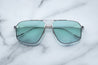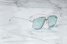 SILVER 100% BETA TITANIUM FRAME WITH SILVER ACCENTS AND BLUE LENSES
