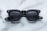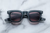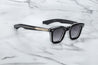 BLACK 10MM CURED CELLULOSE ACETATE FRAME WITH CUSTOM DOUBLE LAMINATED ACETATE TEMPLES FEATURING PRECIOUS METAL HARDWARE AND BLACK GRADIENT LENSES