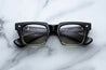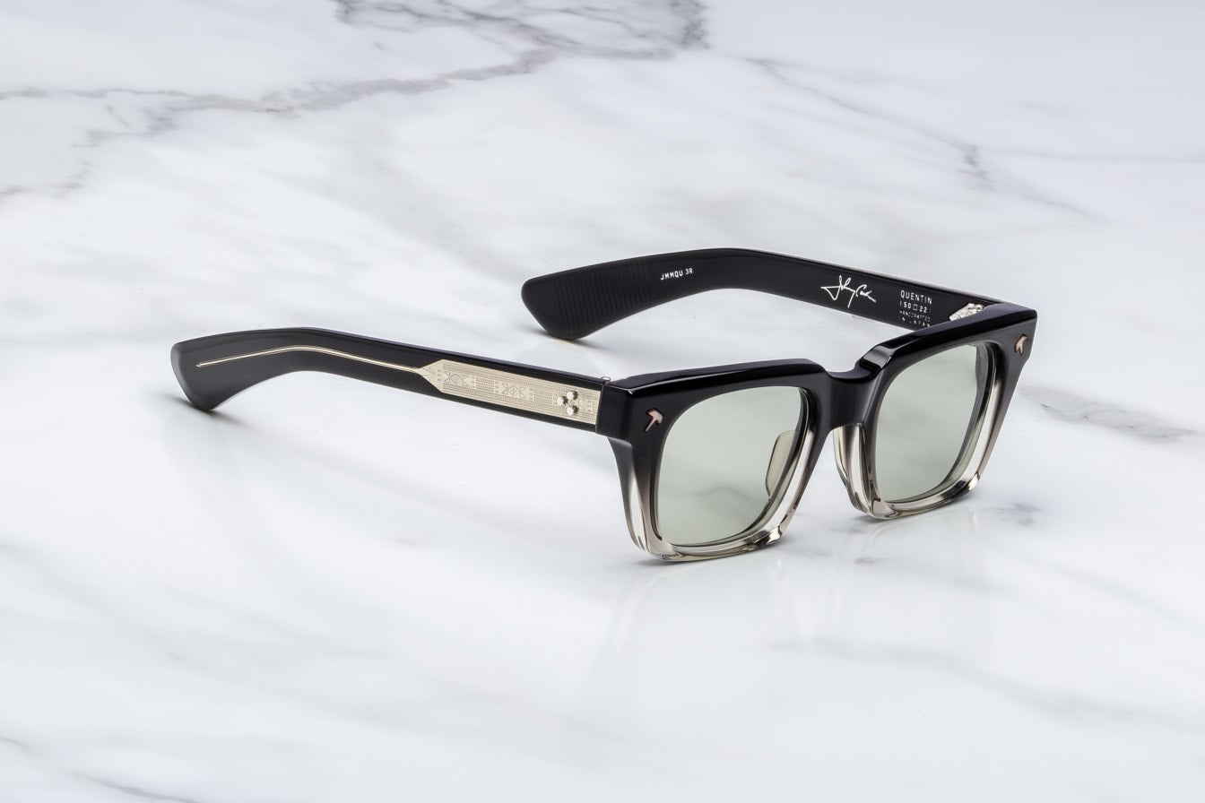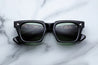 BLACK FADE DOUBLE LAMINATED 10MM CURED CELLULOSE ACETATE FRAME WITH CUSTOM DOUBLE LAMINATED ACETATE TEMPLES AND GREEN LENSES