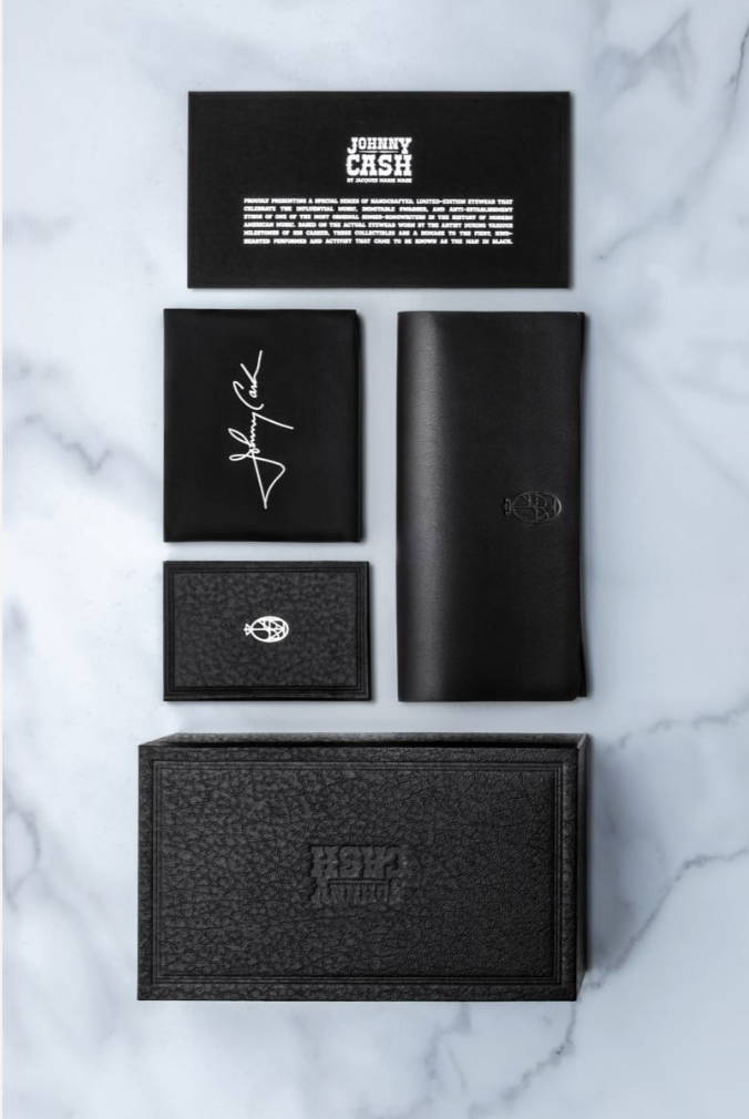 GOLD "JOHNNY CASH" SIGNATURE FOIL MARKING ON INNER TEMPLE