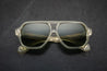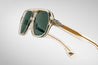 YELLOW 10MM CURED CELLULOSE ACETATE FRAME WITH CUSTOM ACETATE TEMPLES FEATURING PRECIOUS METAL HARDWARE AND GREEN LENSES