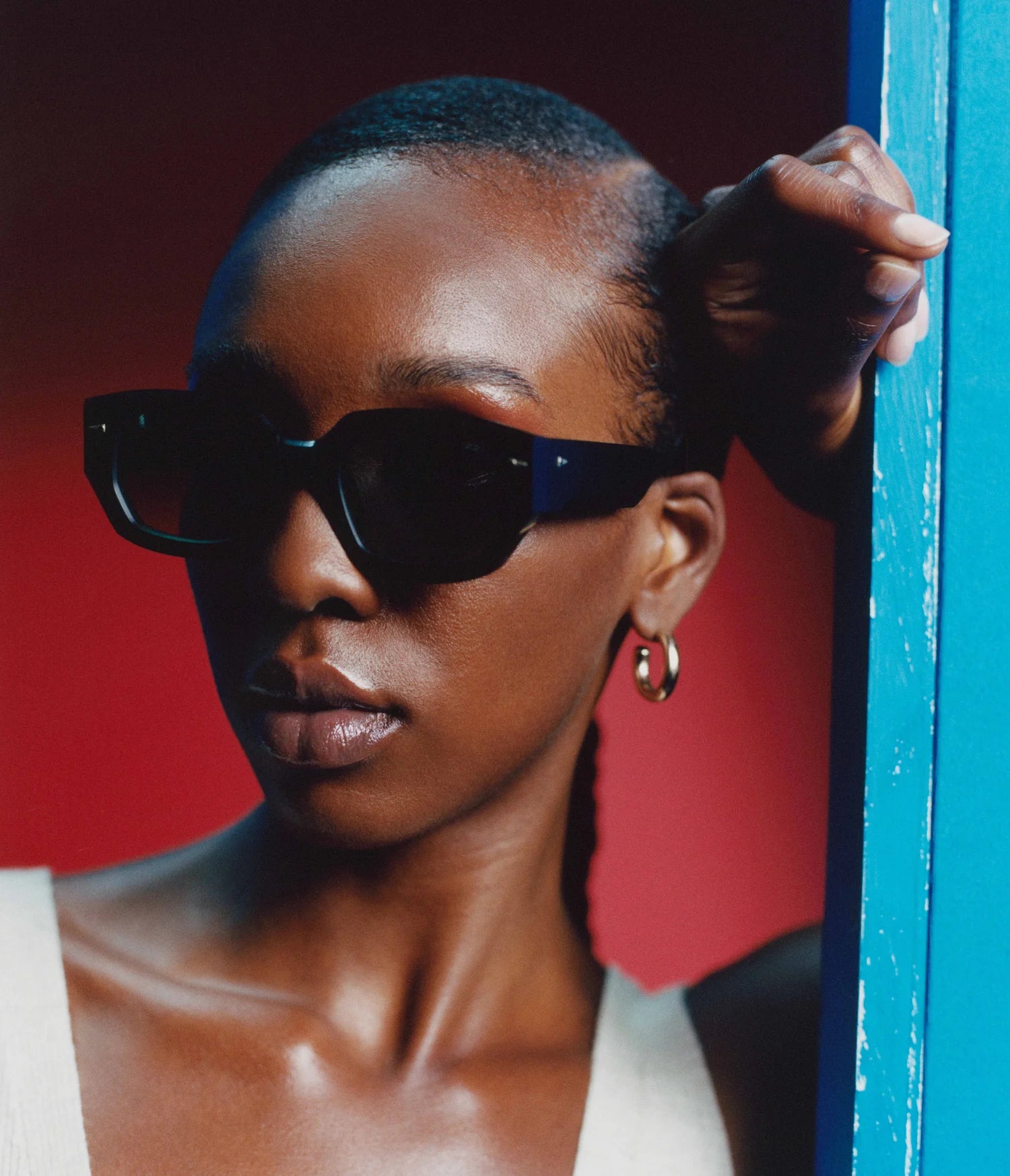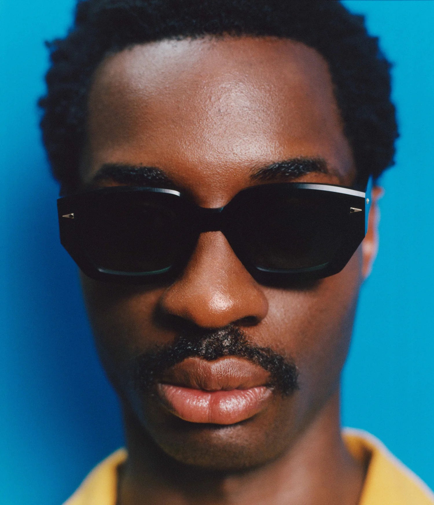 Created in collaboration with Campbell Addy, this bold frame unites strength with sculptural precision. Crafted from 8mm matte-black acetate, it features a full raw-cut finish, sharp angles, and custom geometric filigree. Limited to 250 numbered editions, the Campbell Addy transforms a nostalgic silhouette into a vivid present—an object of artistry brought to life through AHLEM’s French craftsmanship.
