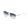 Temple with custom monogram rivet for chain retainer attachment and branded teardrop tip